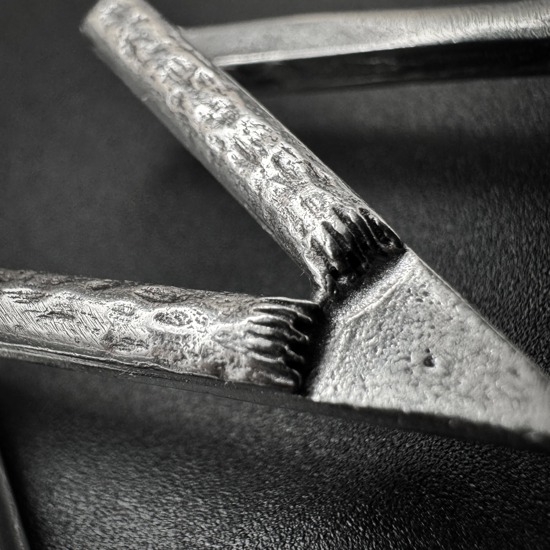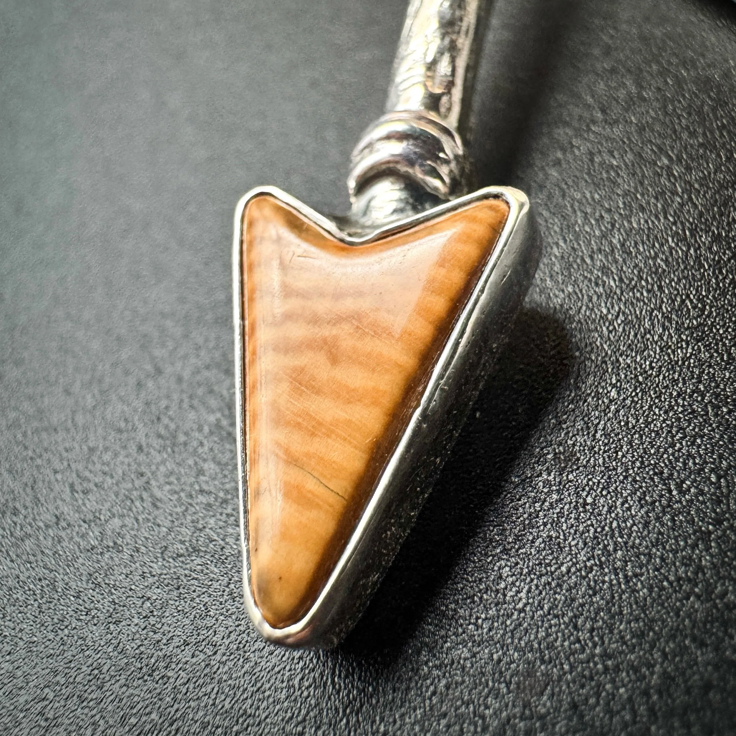 This limited edition Broken Arrow Brim Biter® is handmade with ancient wooly mammoth ivory from a tusk fragment dredged up in one of Alaska’s gold mining regions, a .999 fine silver bezel, and solid .925 sterling silver body.