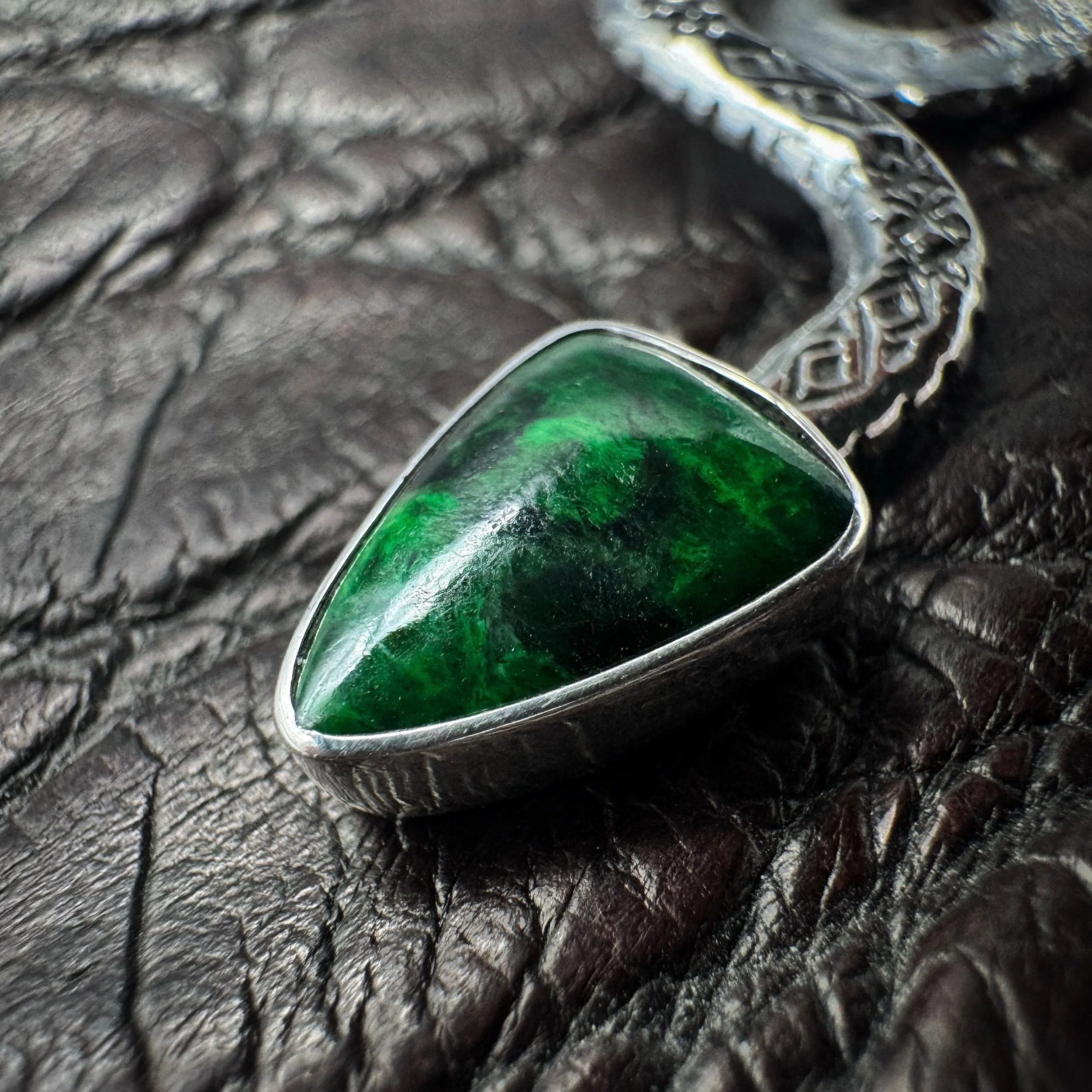 Handmade with solid .925 sterling silver, a .999 fine silver bezel and high-grade rare green Maw Sit-Sit (Burmese jade). This vibrant green jade is of single-source origin in Myanmar (Burma) and geologically unique and complex.