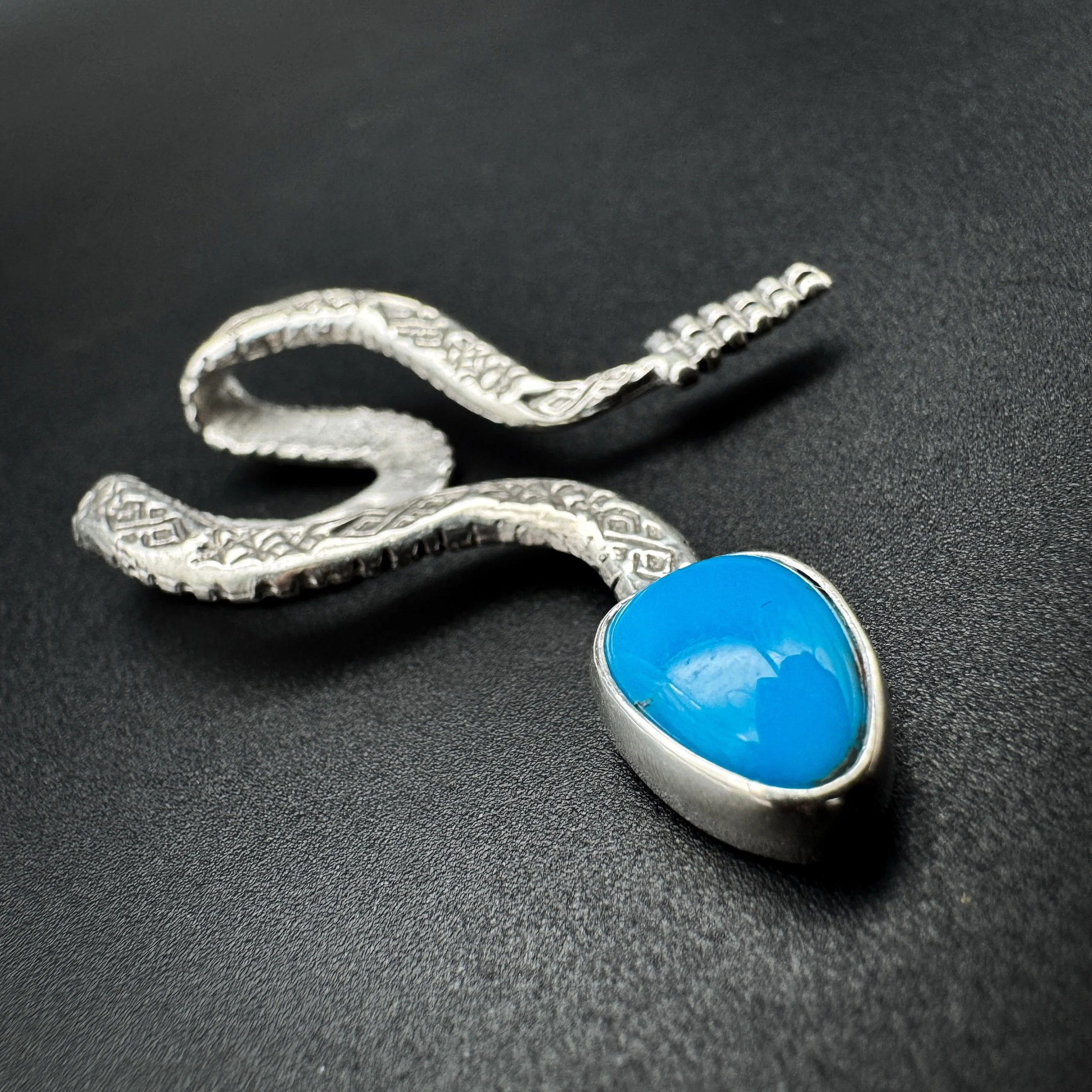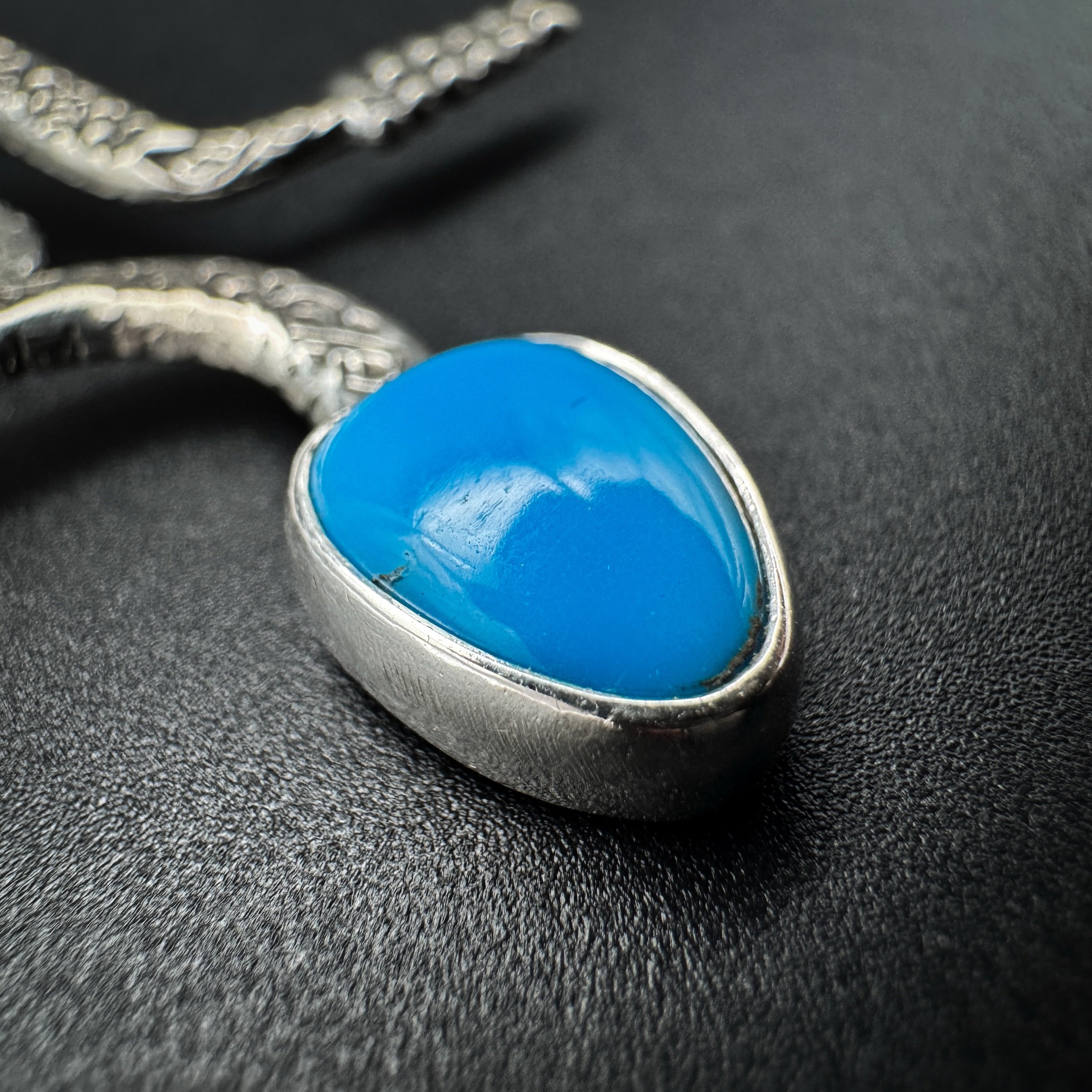 Handmade with solid .925 sterling silver, a .999 fine silver bezel and solid bright-blue Egyptian turquoise.