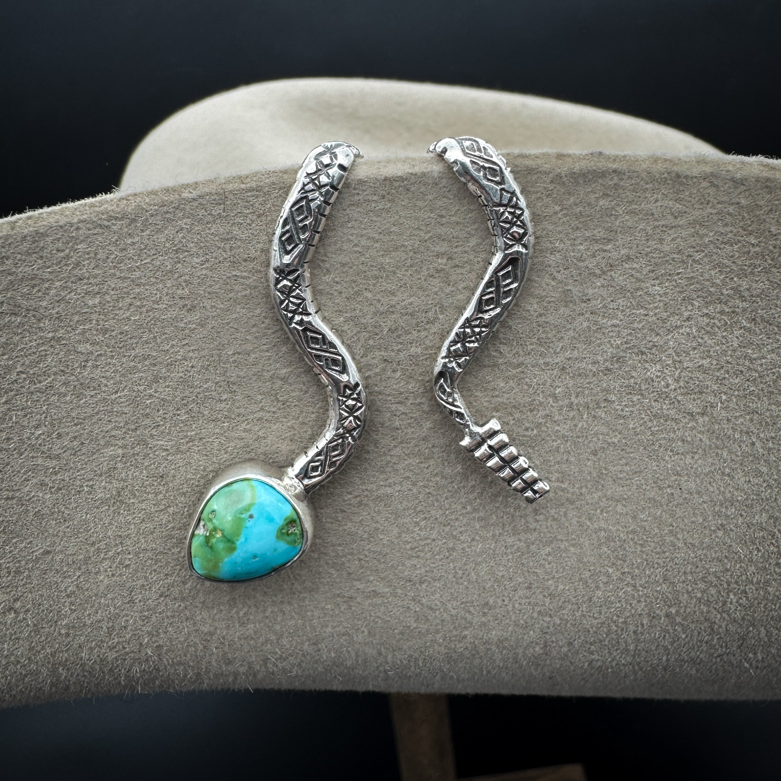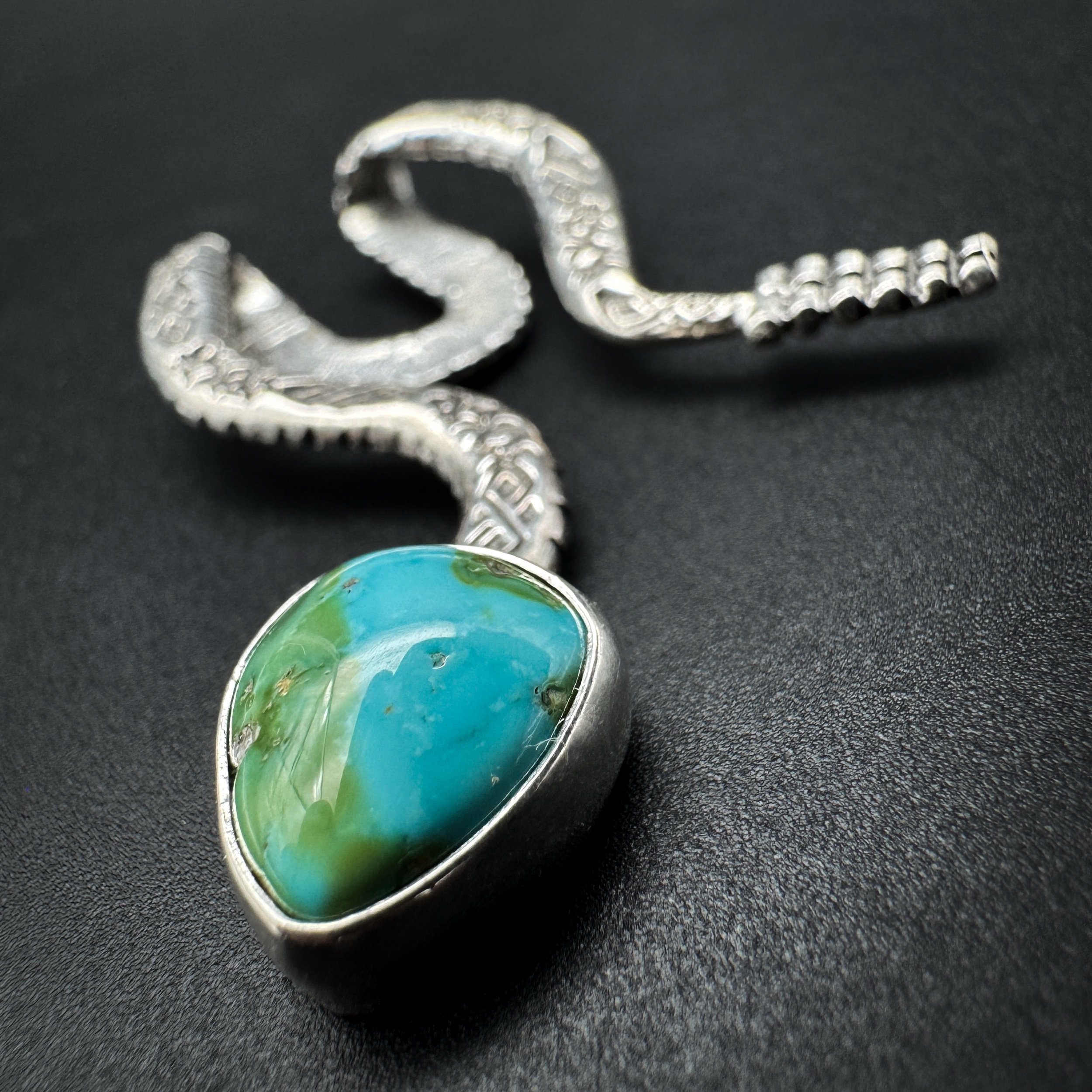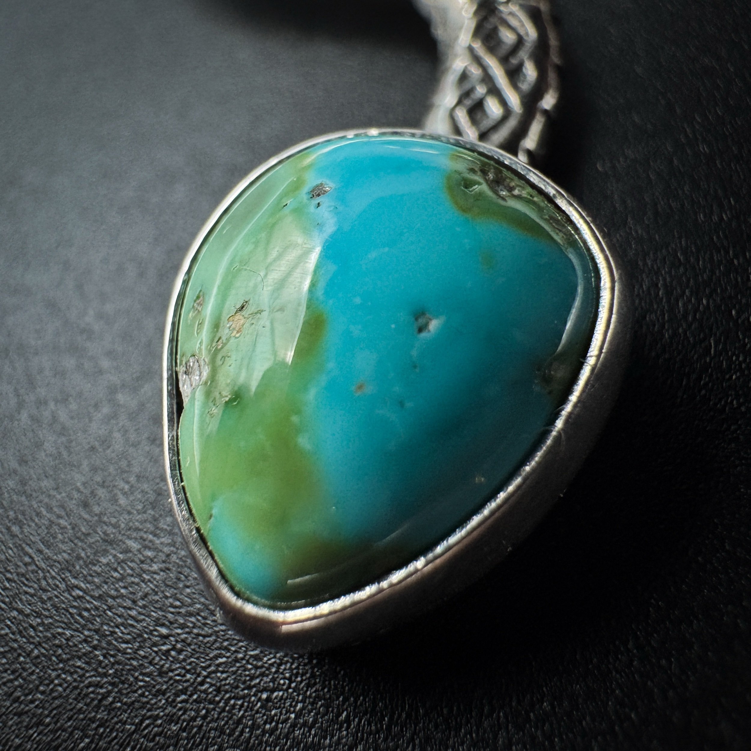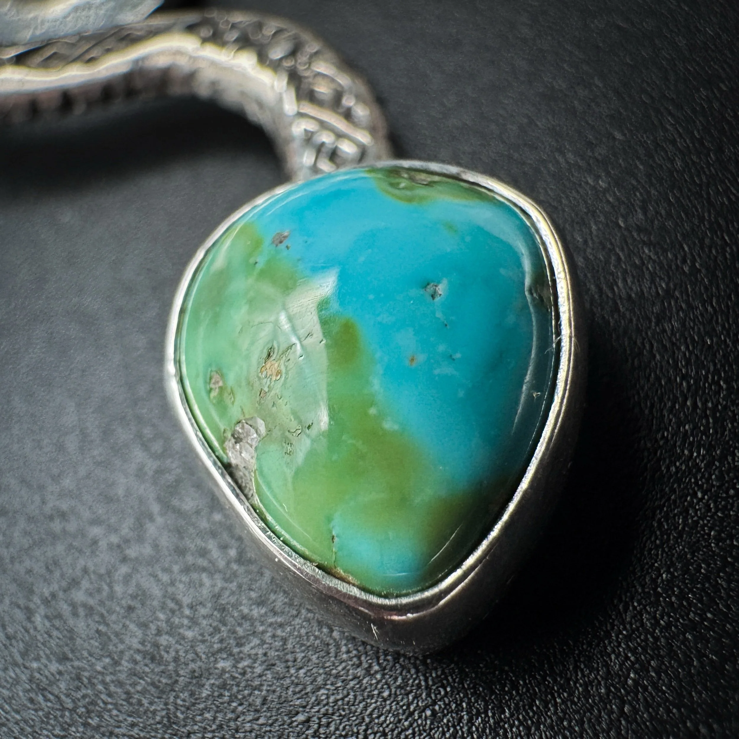 Handmade with solid .925 sterling silver, a .999 fine silver bezel and Sonoran Mountain turquoise. This stone is the perfect mix of blue/green.