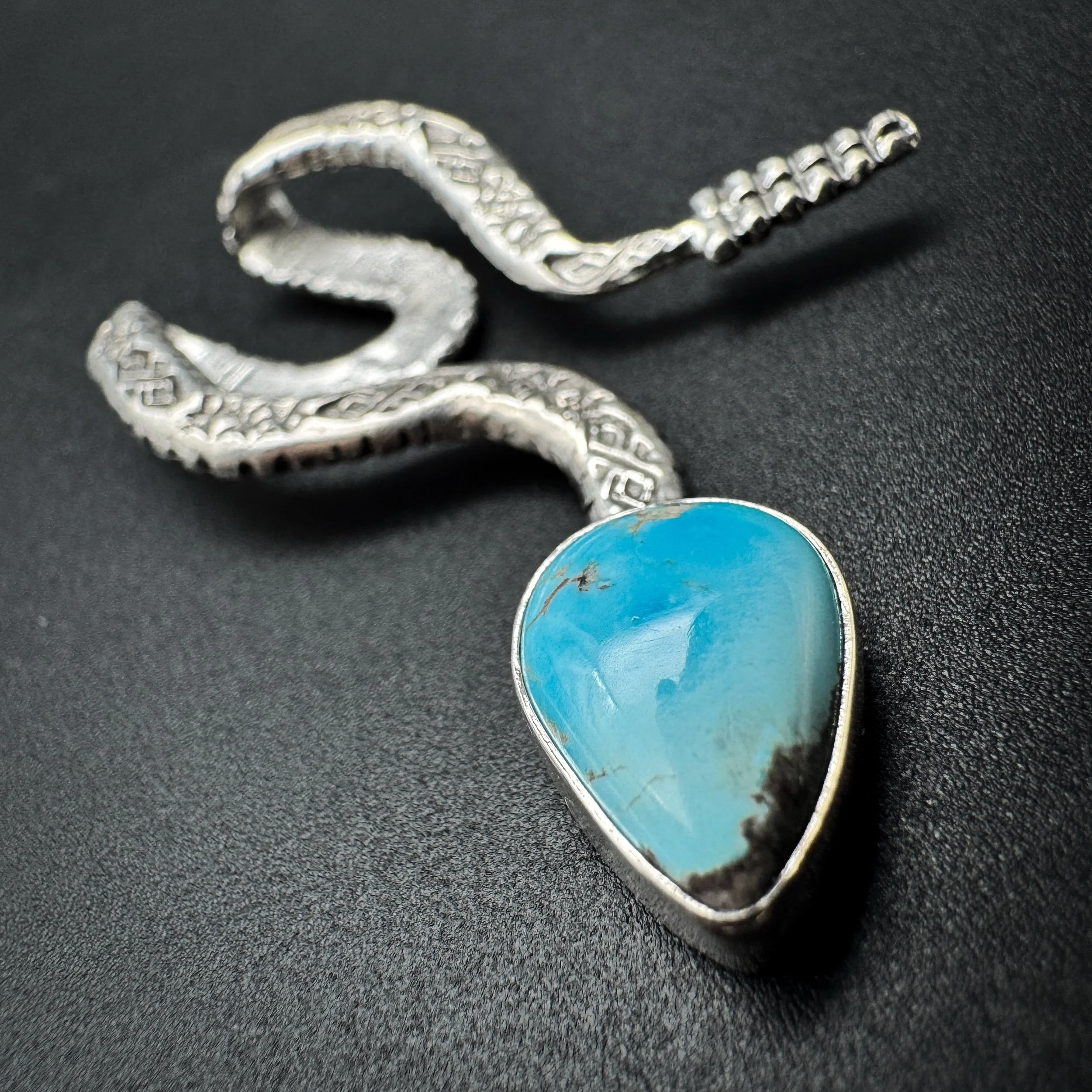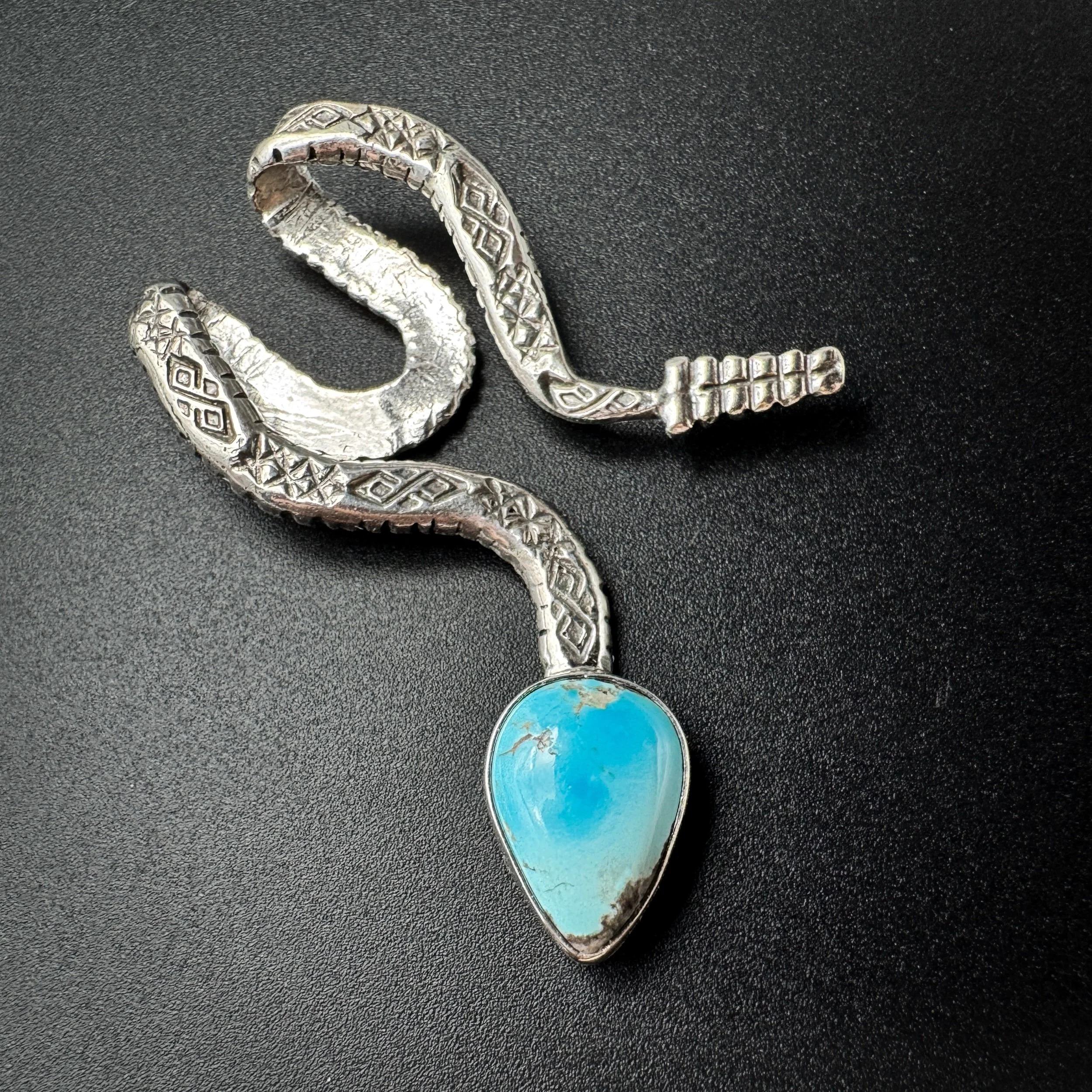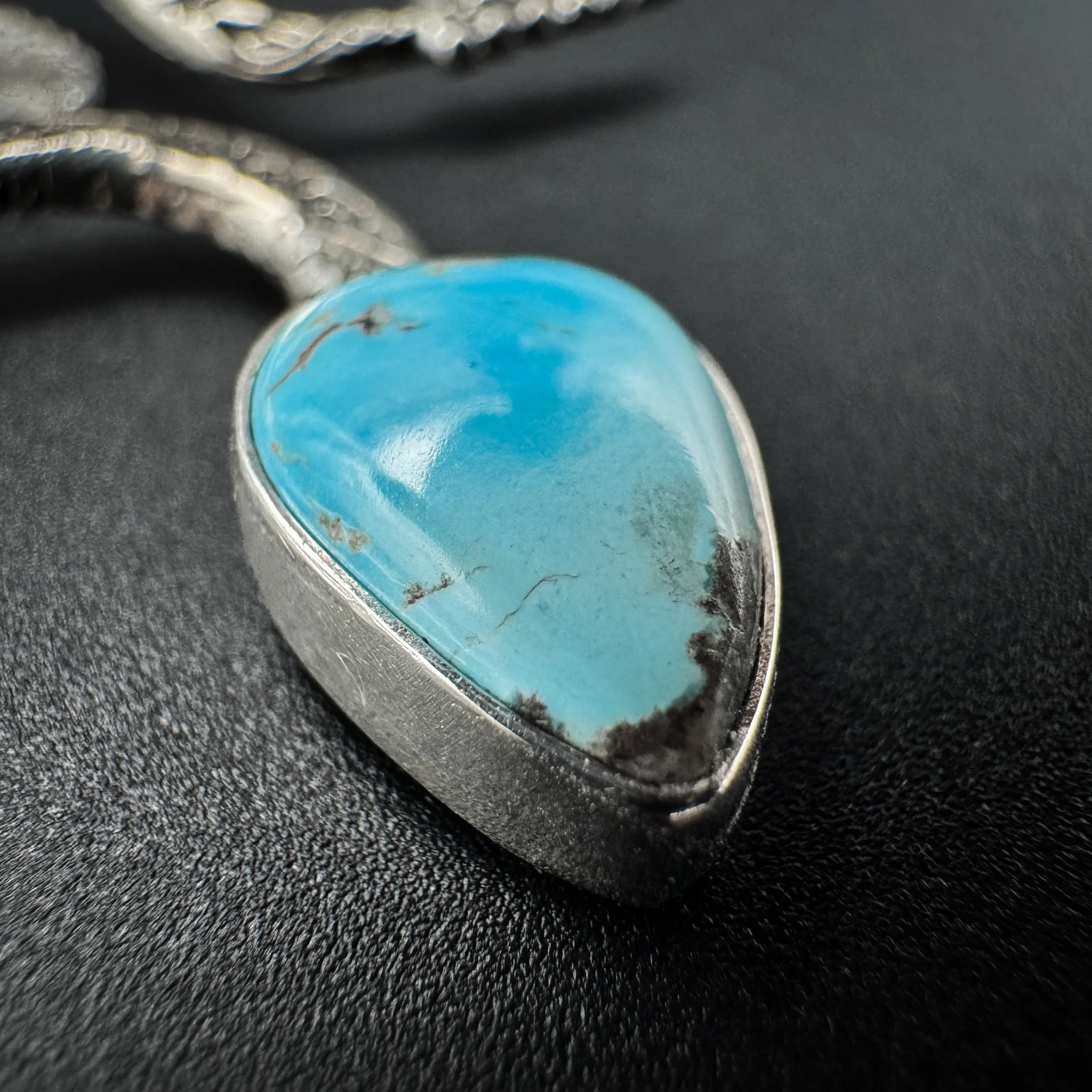 Handmade with solid .925 sterling silver, a .999 fine silver bezel and Lone Mountain turquoise.