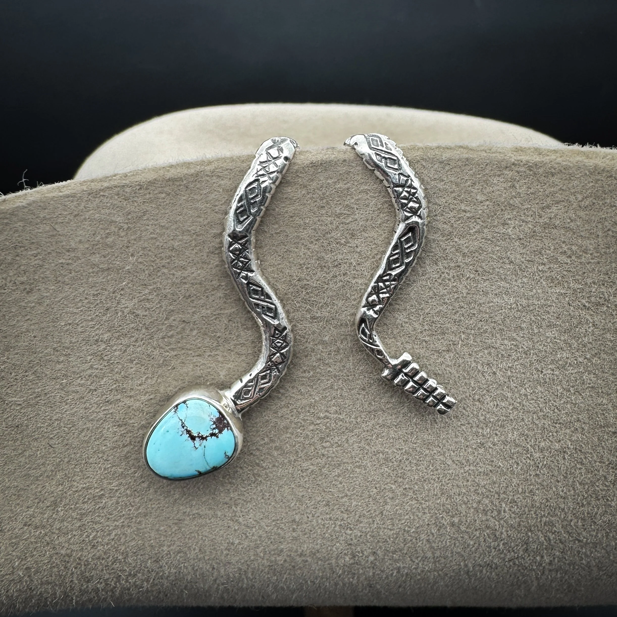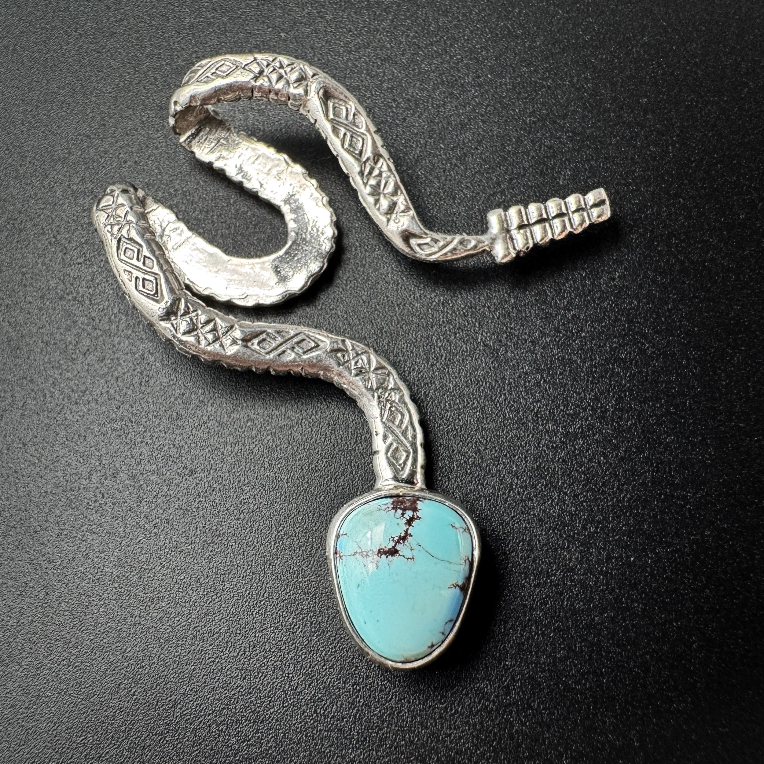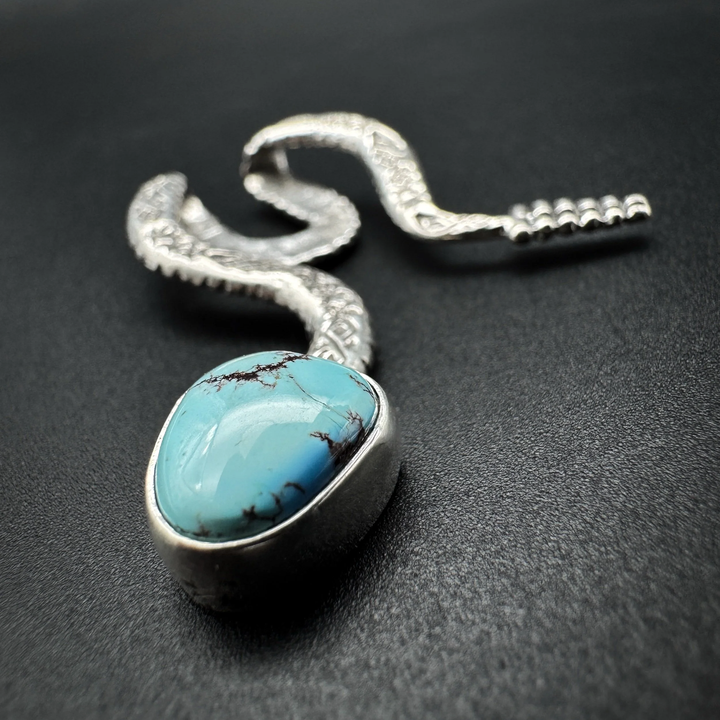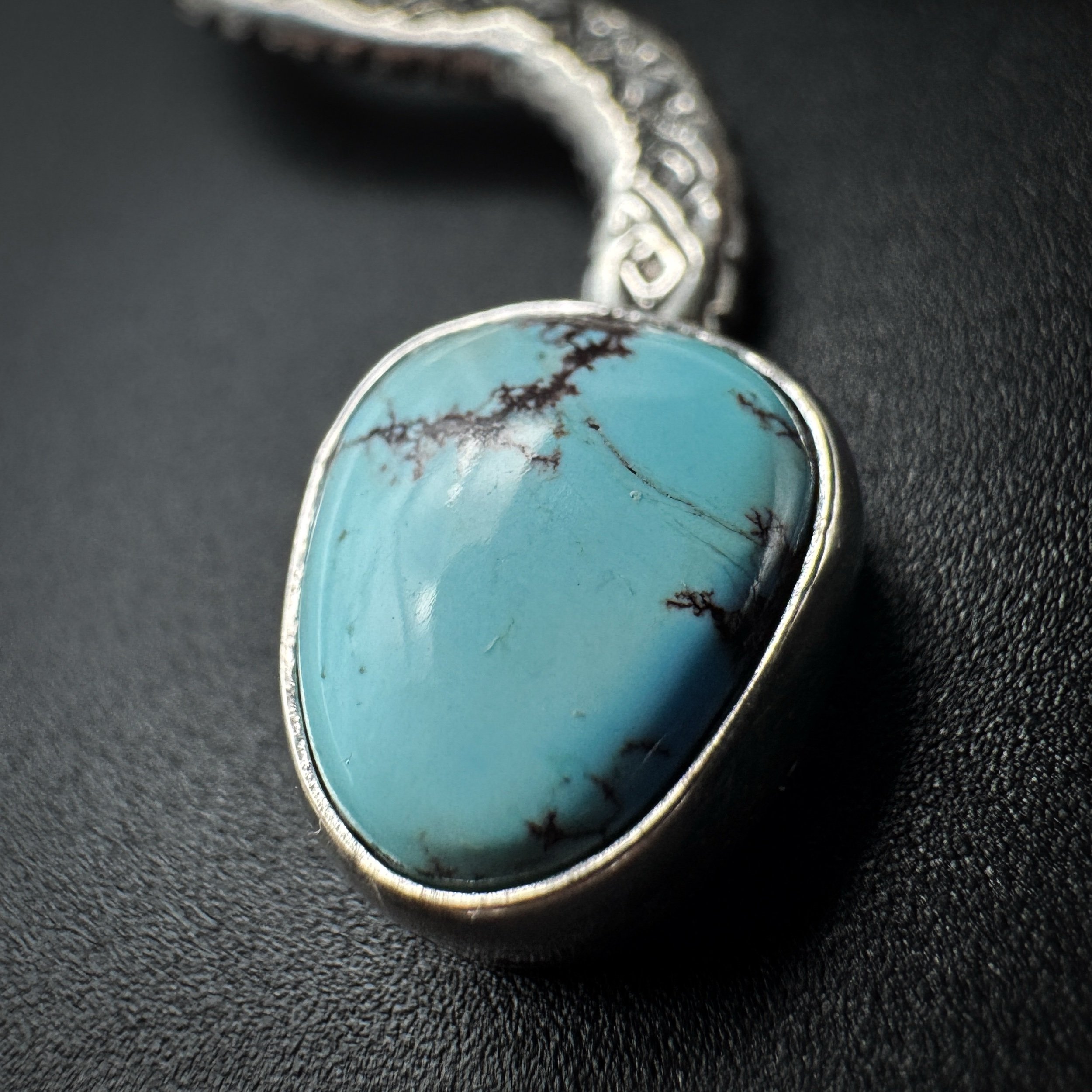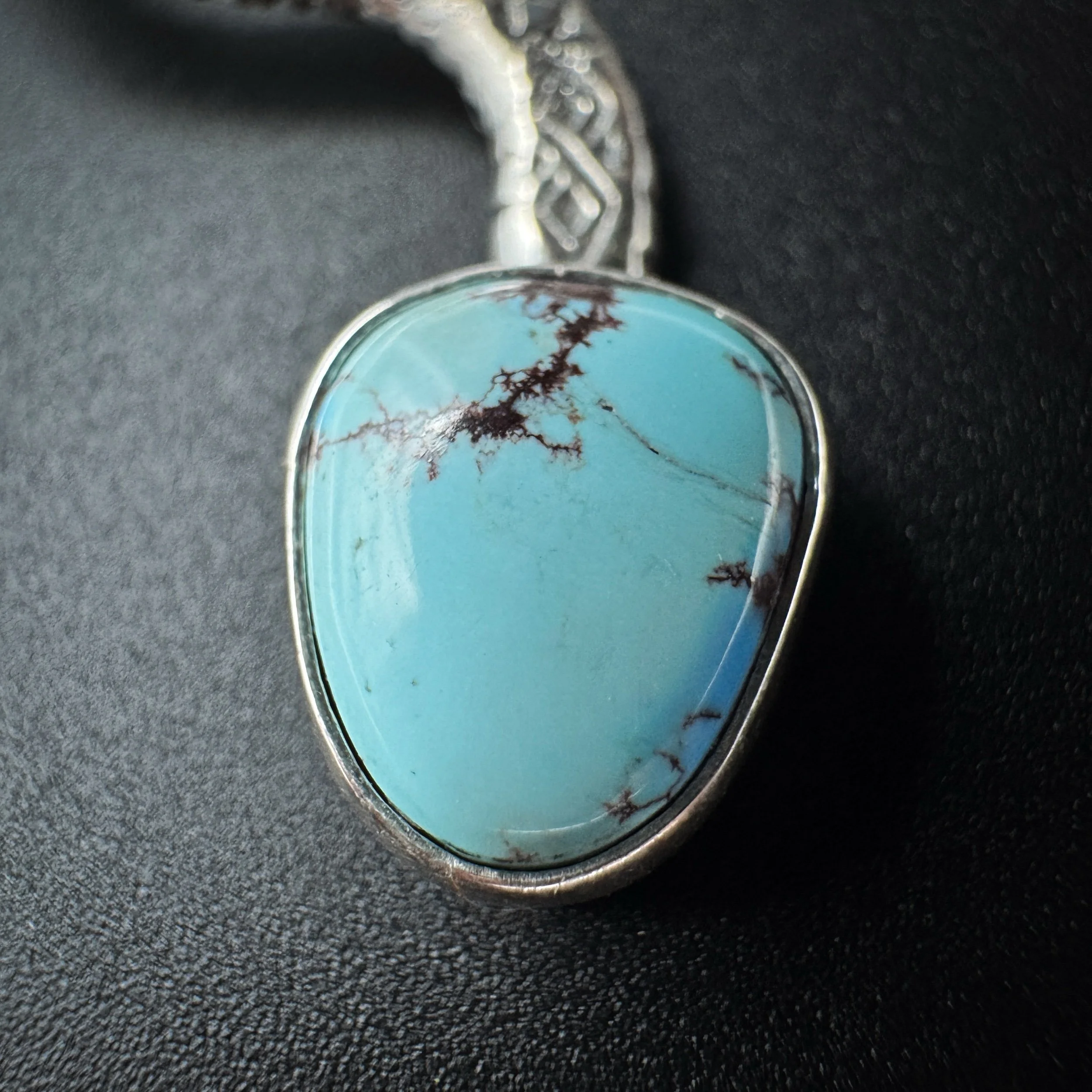 Handmade with solid .925 sterling silver, a .999 fine silver bezel and natural bright-blue Golden Hills turquoise.
