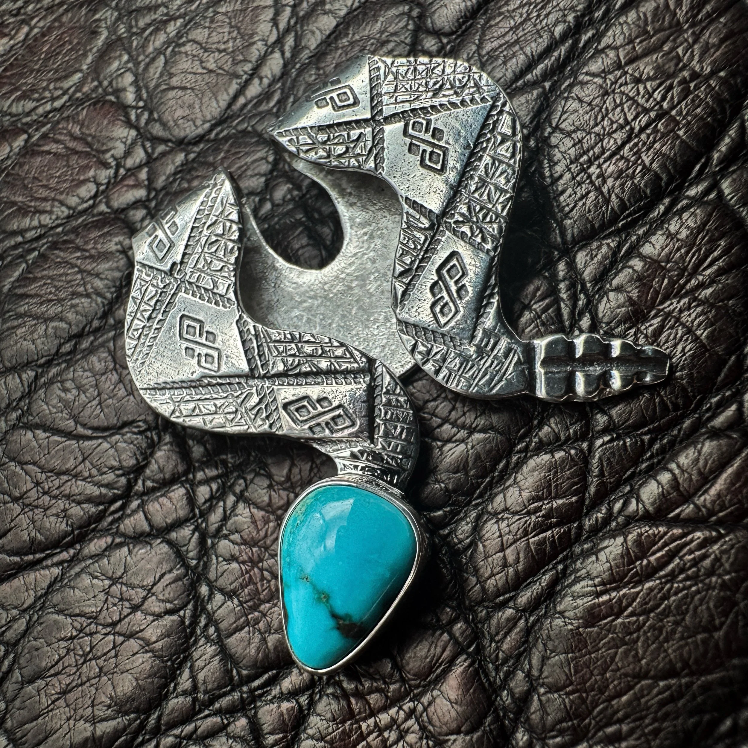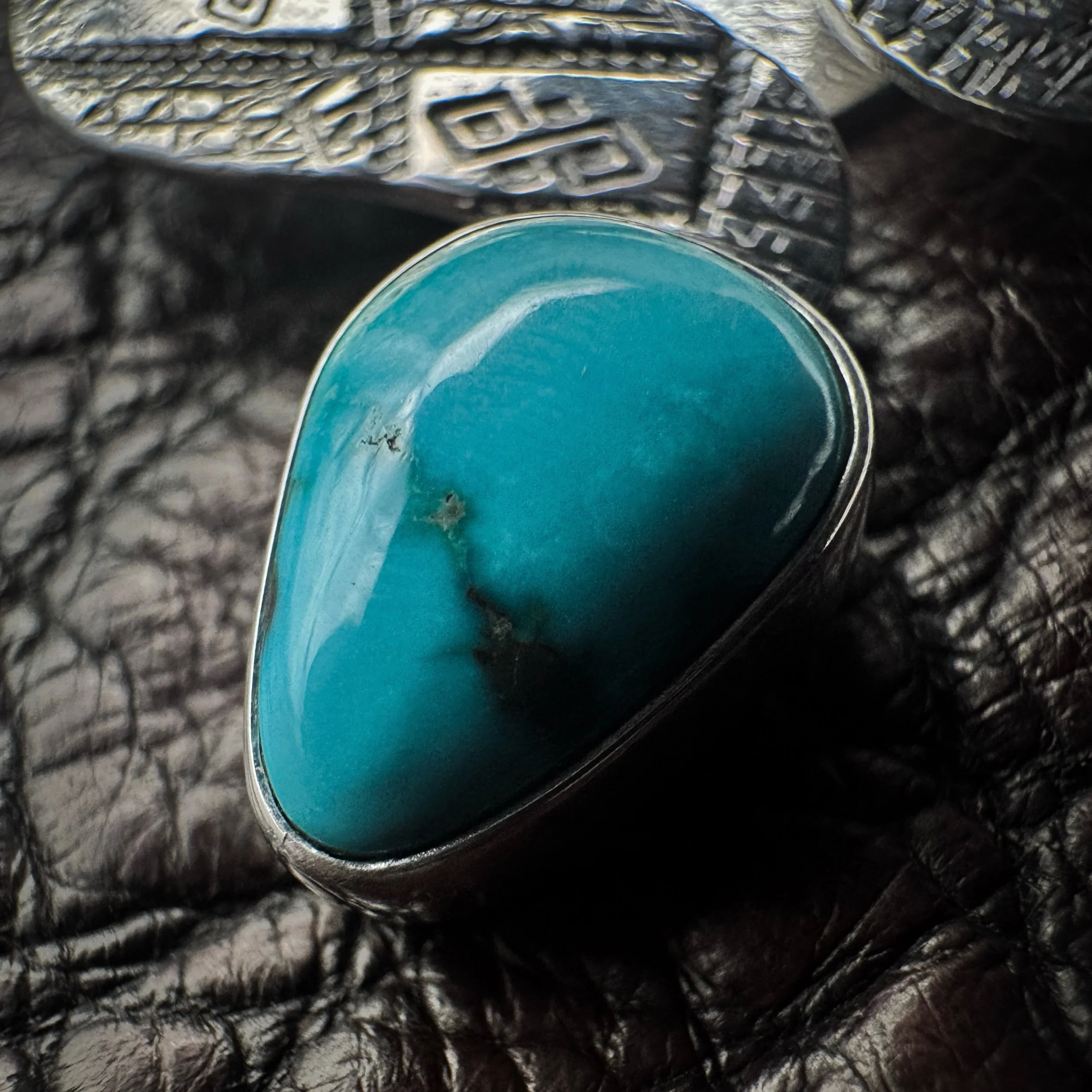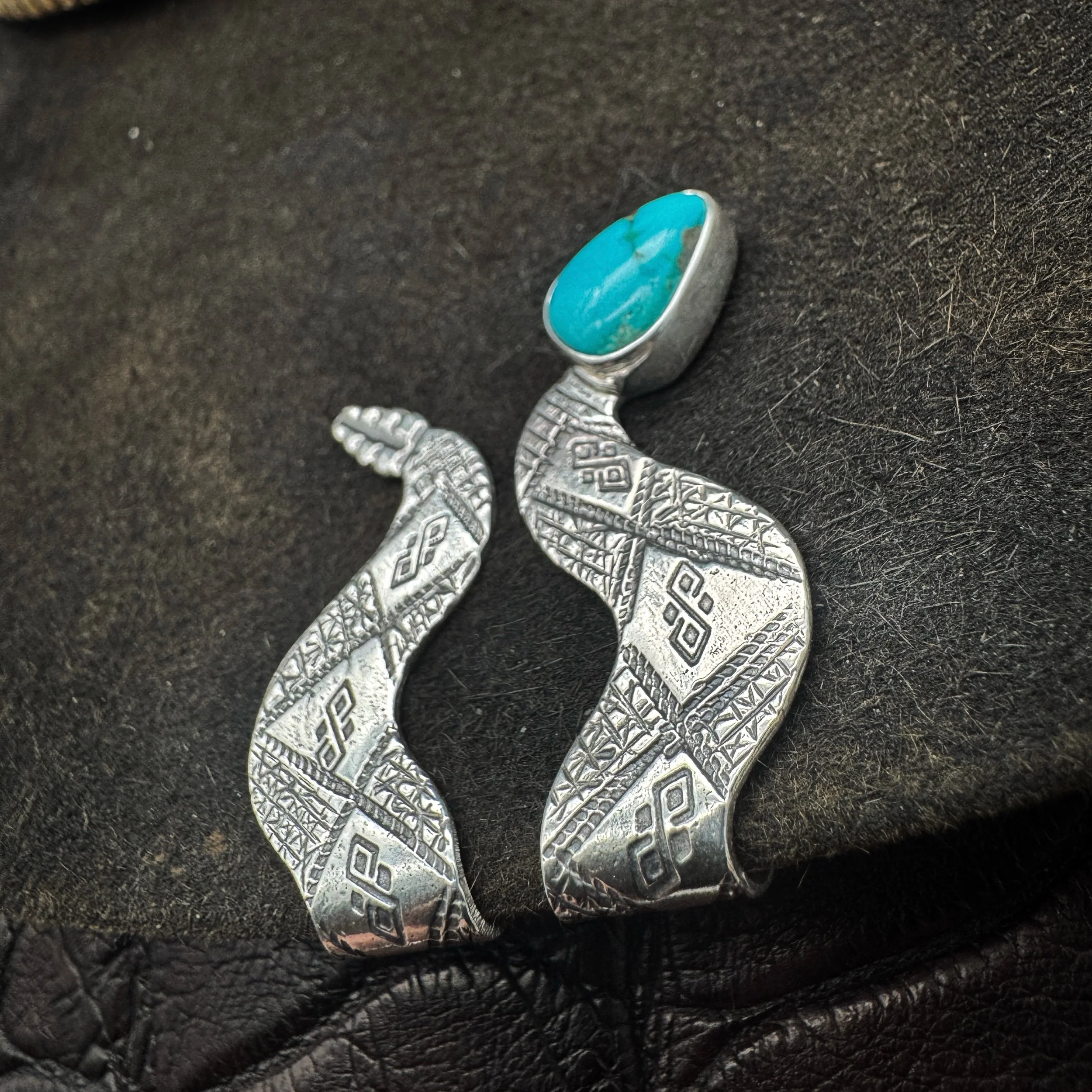This piece is made with stunning blue Carico Lake turquoise bezeled in .999 fine silver on solid .925 sterling silver.
