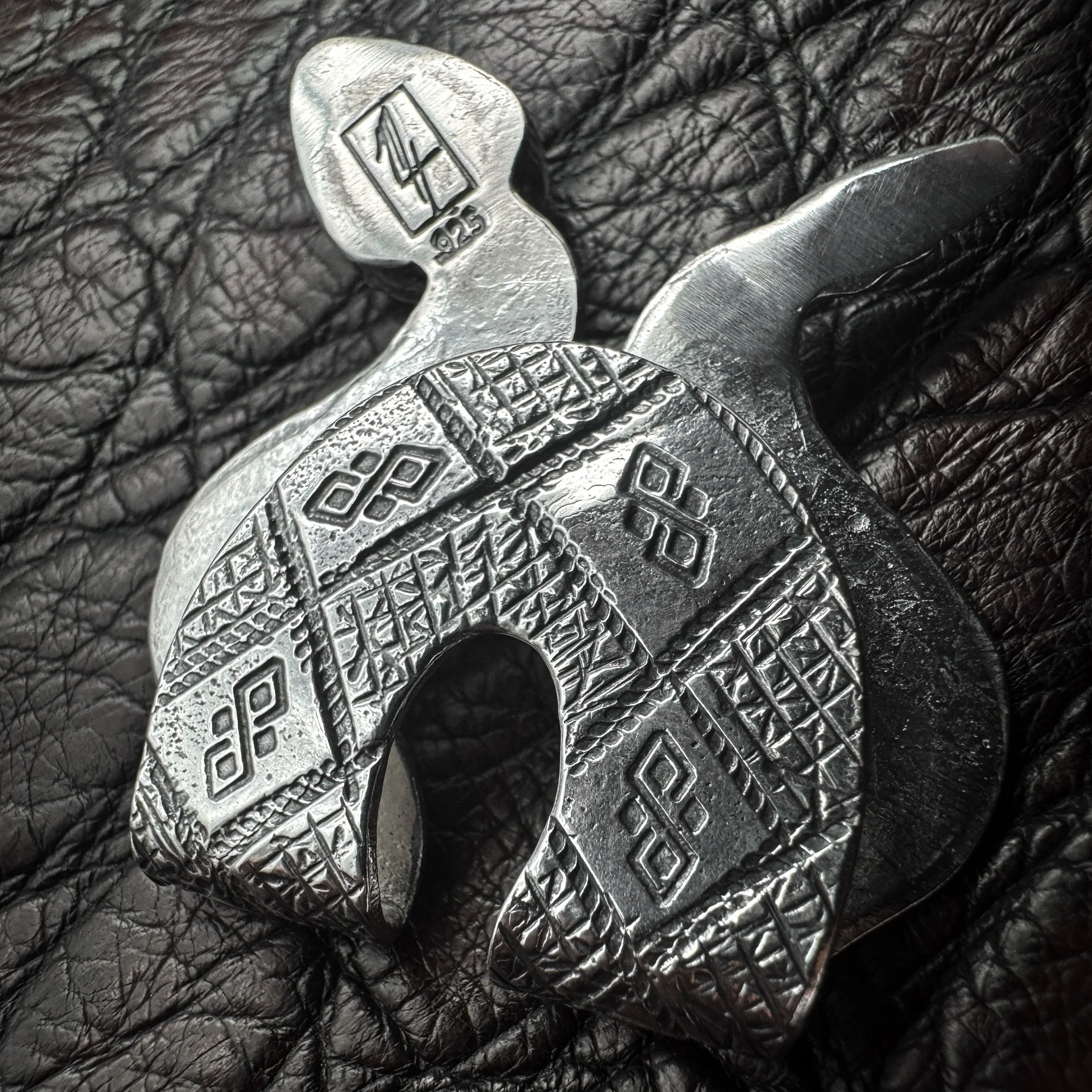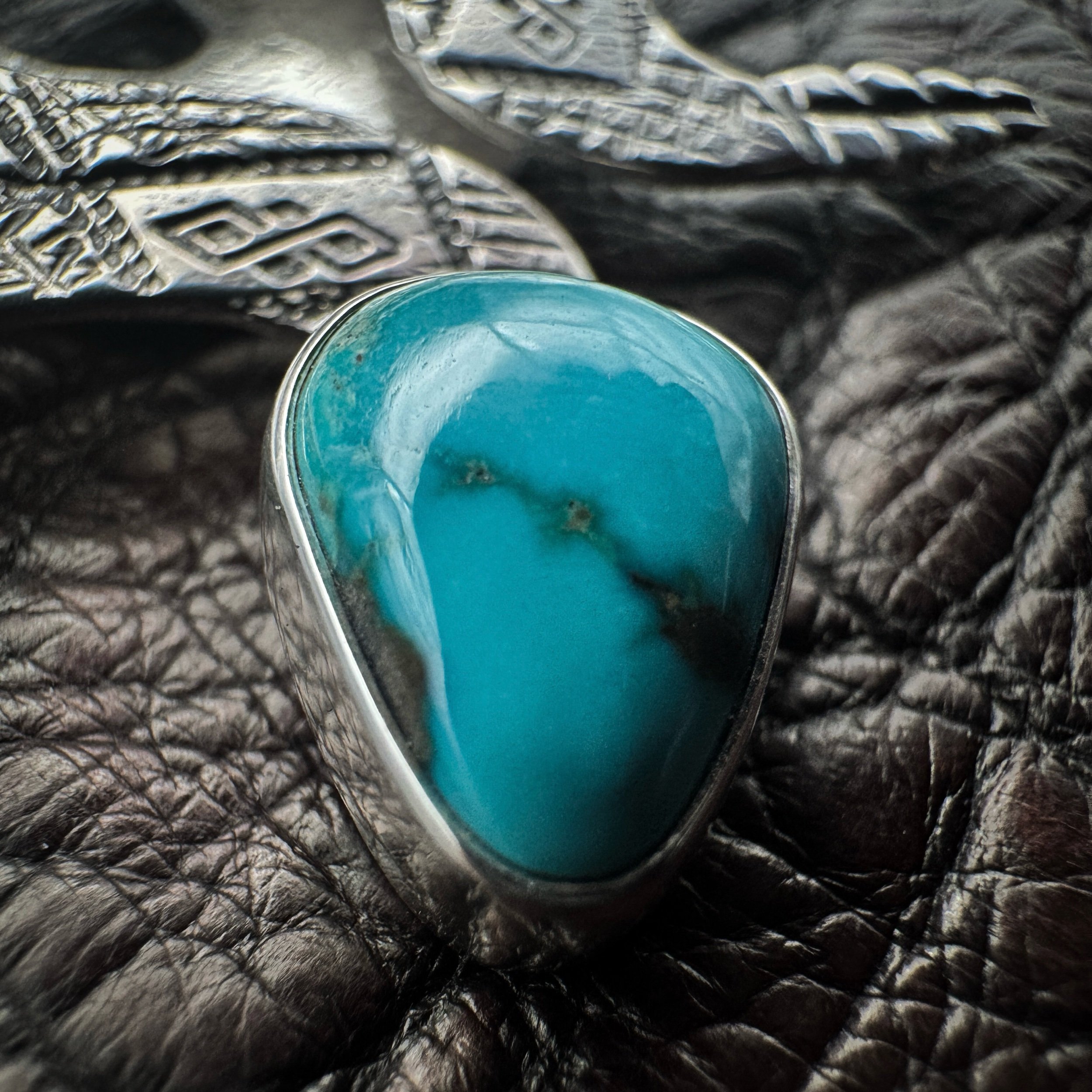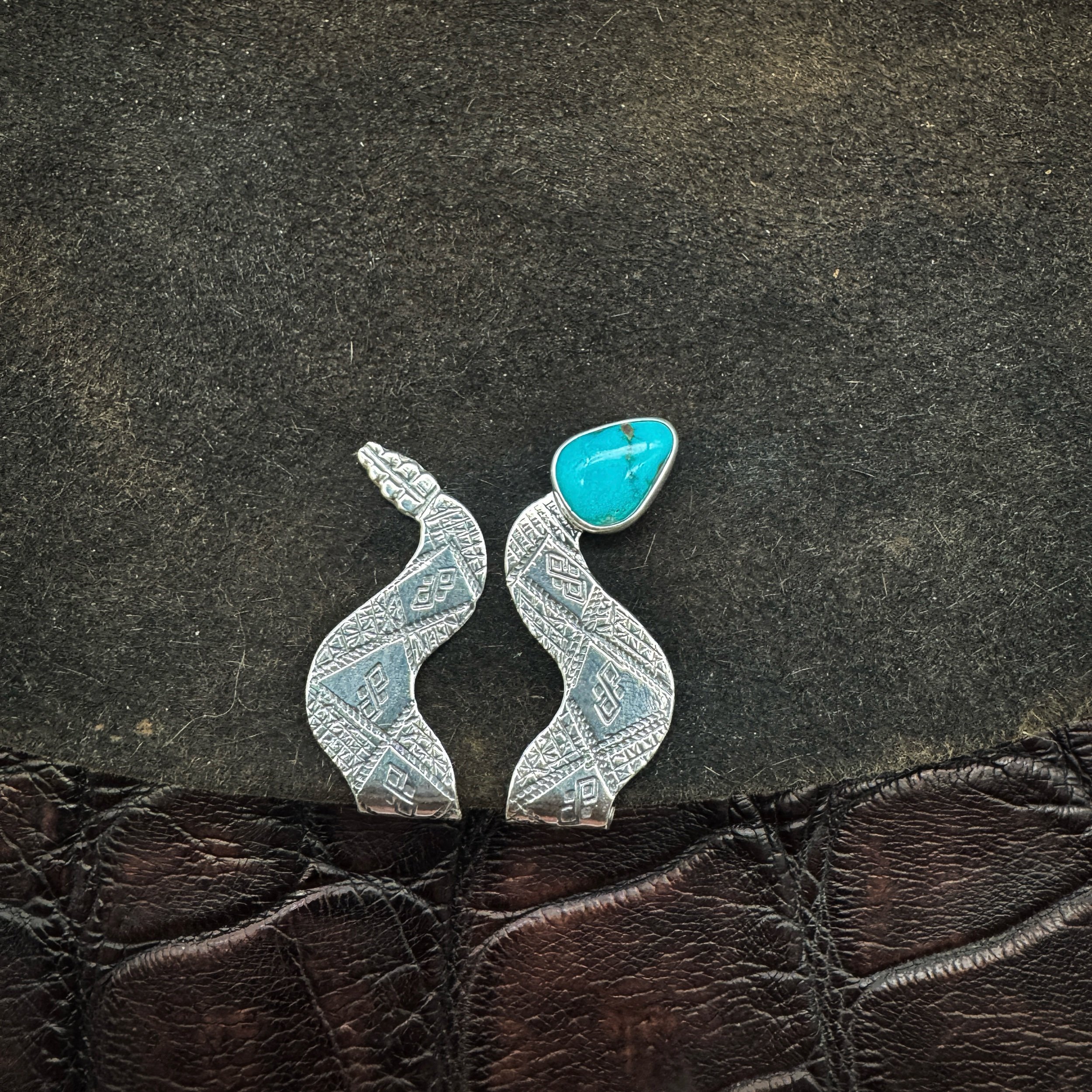 This piece is made with stunning blue Carico Lake turquoise bezeled in .999 fine silver on solid .925 sterling silver.