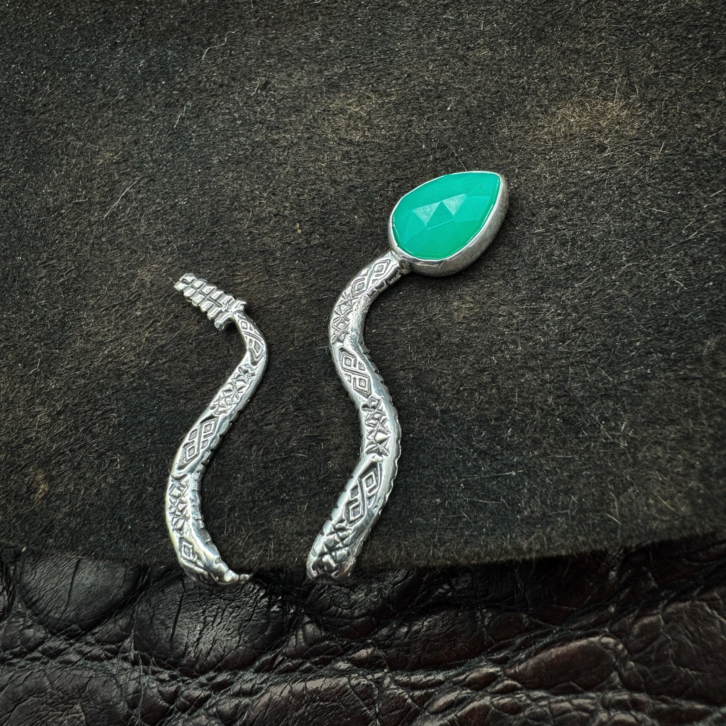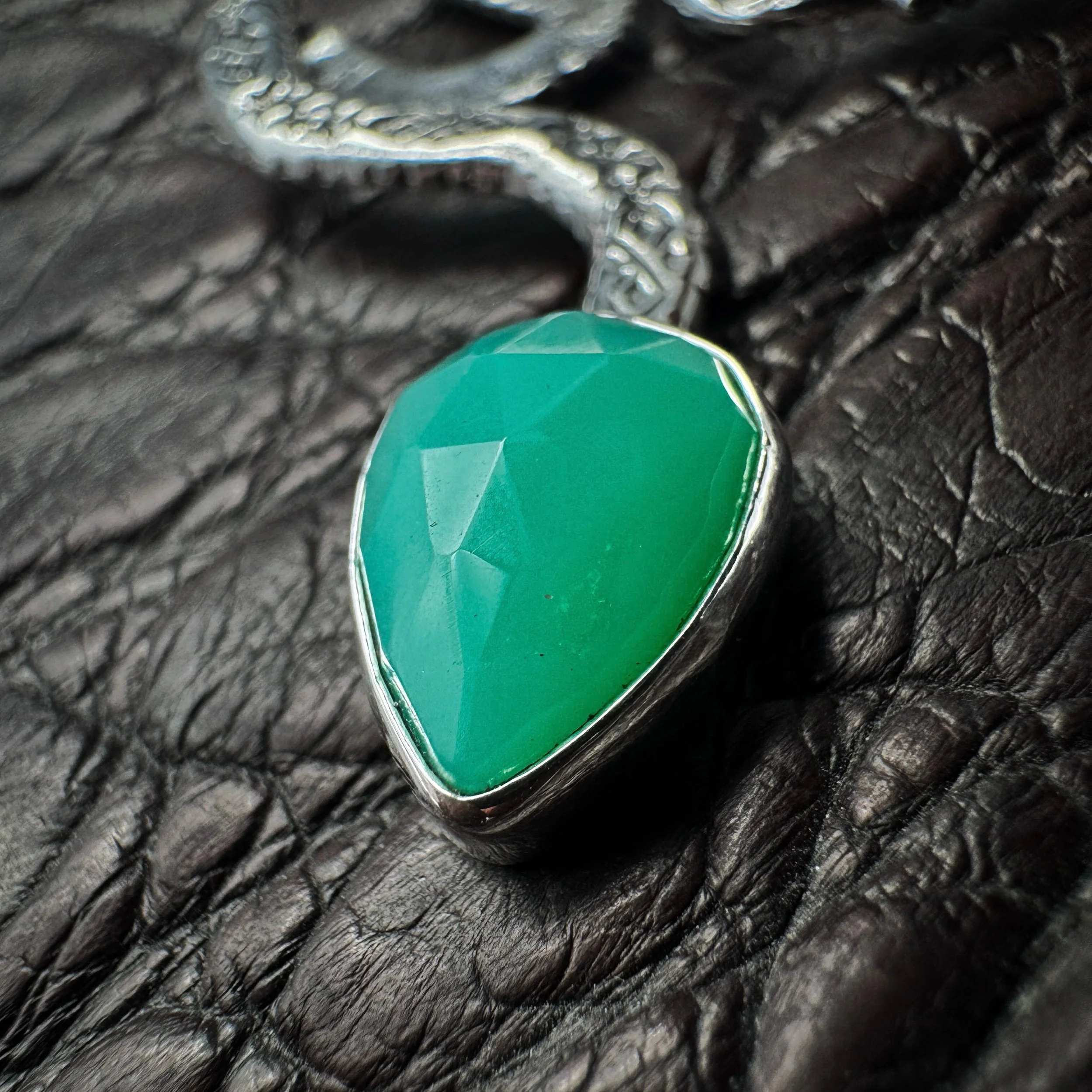 Handmade with solid .925 sterling silver, a .999 fine silver bezel and faceted green chrysoprase that absolutely glows.